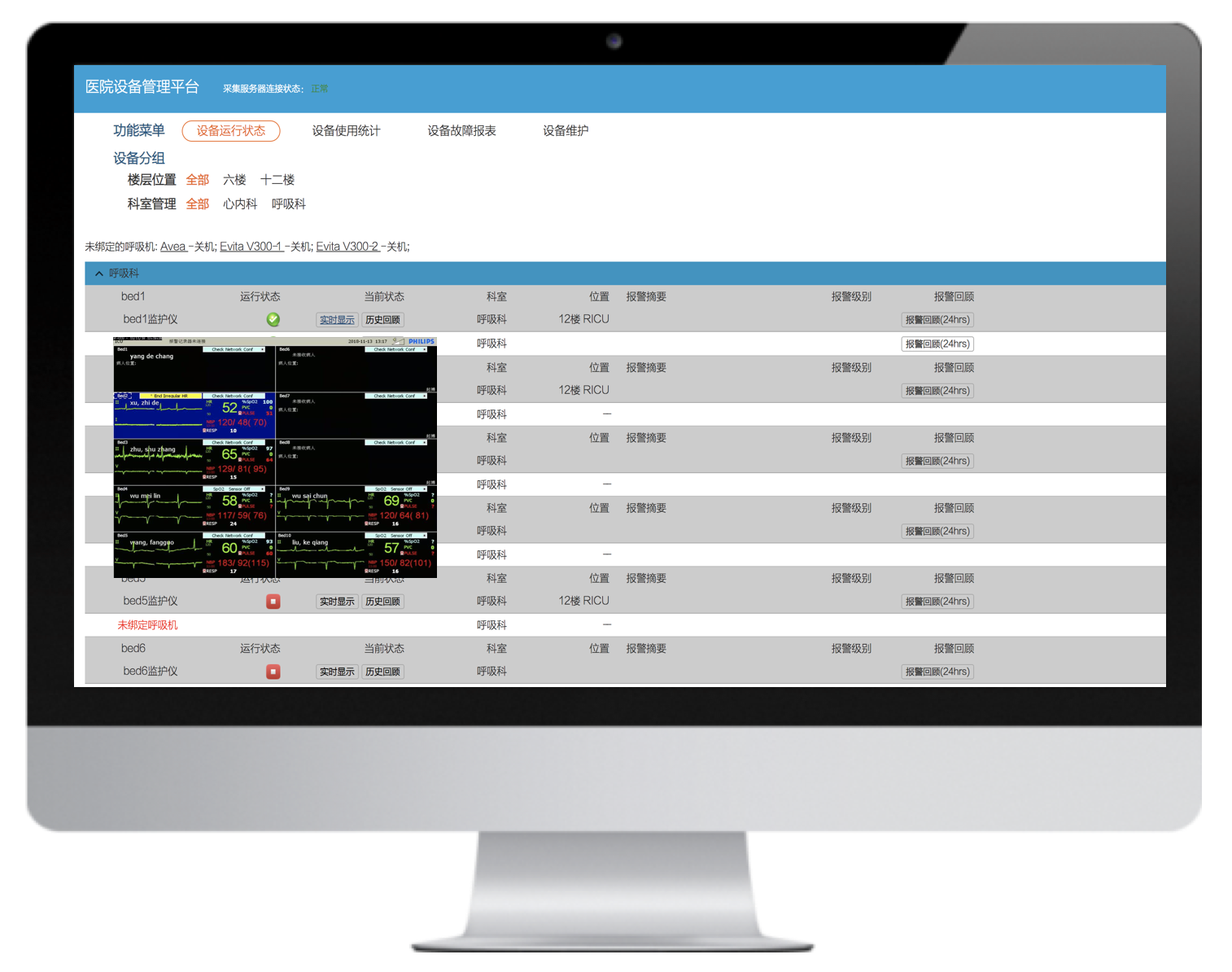 病床綁定、患者體征實時監護、精確告警、告警響應處置等